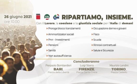 Sbarra: “Un nuovo Patto sociale per ripartire dal lavoro” 26 giugno 2021 ““Grazie per questa bella giornata di mobilitazione e di lotta. Grazie per questa straordinaria partecipazione e vorremmo mandare da Firenze, dall’area centrale del Paese, dalla Toscana, un grande abbraccio virtuale alla piazza di Bari e di Torino. Grazie […]
