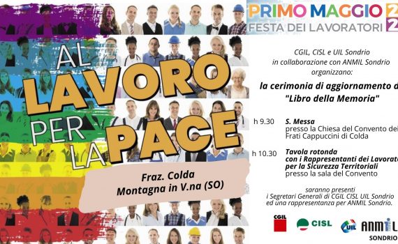 Cgil Cisl Uil Sondrio invitano a ricordare insieme la festa dei Lavoratori. Lo slogan di quest’anno sarà “al lavoro per la Pace”, l’iniziativa volgerà infatti sui temi della pace, del lavoro e della crescita del paese. Gli appuntamenti in provincia prevedono alle ore 9.30, in collaborazione con ANMIL Sondrio, la […]