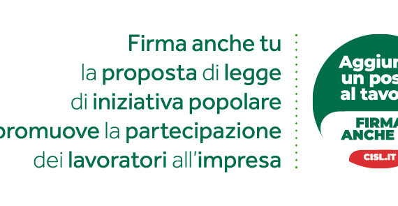 Al via la raccolta firme nelle piazze per la proposta di legge Cisl Con l’obiettivo di aumentare il coinvolgimento dei lavoratori e delle lavoratrici nelle decisioni delle imprese la Cisl propone una legge di sostegno a forme di partecipazione gestionale , economica-finanziaria, organizzativa e consultiva. Proponiamo di dare piena attuazione […]