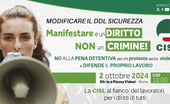 “Modificare il DDL Sicurezza” sit-in a Piazza Vidoni, 2 ottobre ore 10:00 NO alla pena detentiva per chi protesta senza violenza e DIFENDE il proprio lavoro! Per maggiori informazioni visitare Cisl Nazionale