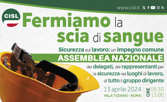Campagna nazionale Cisl “Fermiamo la scia di Sangue” Sabato 13 aprile le bandiere della Cisl si alzeranno al PalaTiziano di Roma in una grande Assemblea Nazionale su salute e sicurezza. L’iniziativa si inserisce nel quadro della mobilitazione che da febbraio impegna la Cisl in assemblee e iniziative nei luoghi di […]