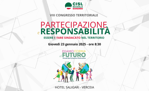 VIII CONGRESSO CISL SCUOLA SONDRIO Diamo forma al futuro Il 23 gennaio 2025, presso l’hotel Saligari” a Verceia, alla presenza della Segretaria Generale CISL SCUOLA Lombardia, Monica Manfredini, del Segretario Generale UST Cisl Sondrio Davide Fumagalli, si è svolto il VIII Congresso della CISL SCUOLA Sondrio che, con un numero […]