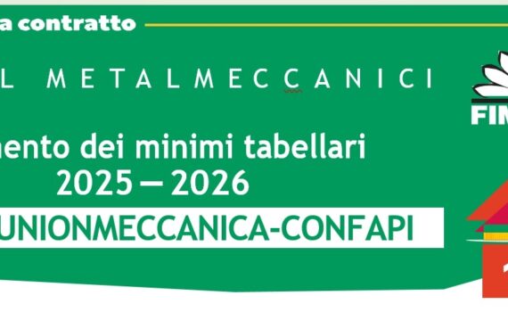 Nella giornata di oggi, UNIONMECCANICA, FIM, FIOM e UILM hanno sottoscritto un accordo relativo agli aumenti retributivi per il biennio 2025-2026. Per il 5° livello, è stato definito un incremento complessivo di € 100, pari al 4,33%. Dal 1° settembre 2025 è prevista l’erogazione al 5^ livello di € 22,10 […]