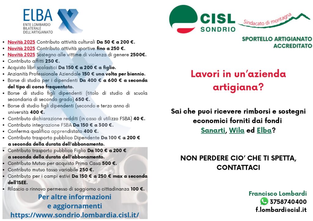 Clicca qui per scaricare il volantino WELFARE ARTIGIANATO di CISL SONDRIO