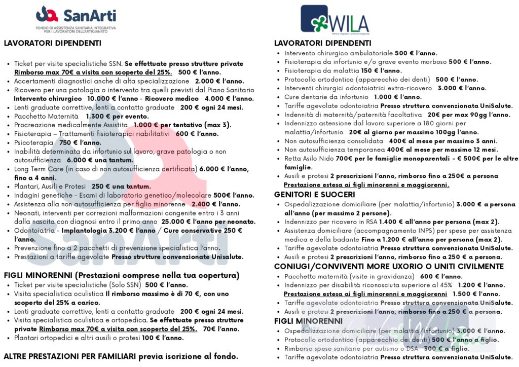 Ogni lavoratore artigiano ha diritto alla formazione, erogata tramite FondartigianatoSan.Arti è il fondo per l’assistenza sanitaria integrativa nazionale, Wila il fondo di Welfare Integrativo Lombardo dell’Artigianato, mentre quello per la pensione complementare, Artifond, è recentemente confluito in Fonte, il fondo integrativo per dipendenti del commercio, del terziario e dei servizi. Nel 2016 si è costituito Fsba il fondo per il finanziamento della “ cassa integrazione artigiana “. La Cisl e le sue categorie con questo spazio intendono fornire alle lavoratrici e ai lavoratori dell’artigianato, e a tutti coloro che sono interessati, un servizio che permetta una maggior conoscenza dei diritti e delle opportunità che il sindacato ottiene attraverso la contrattazione.