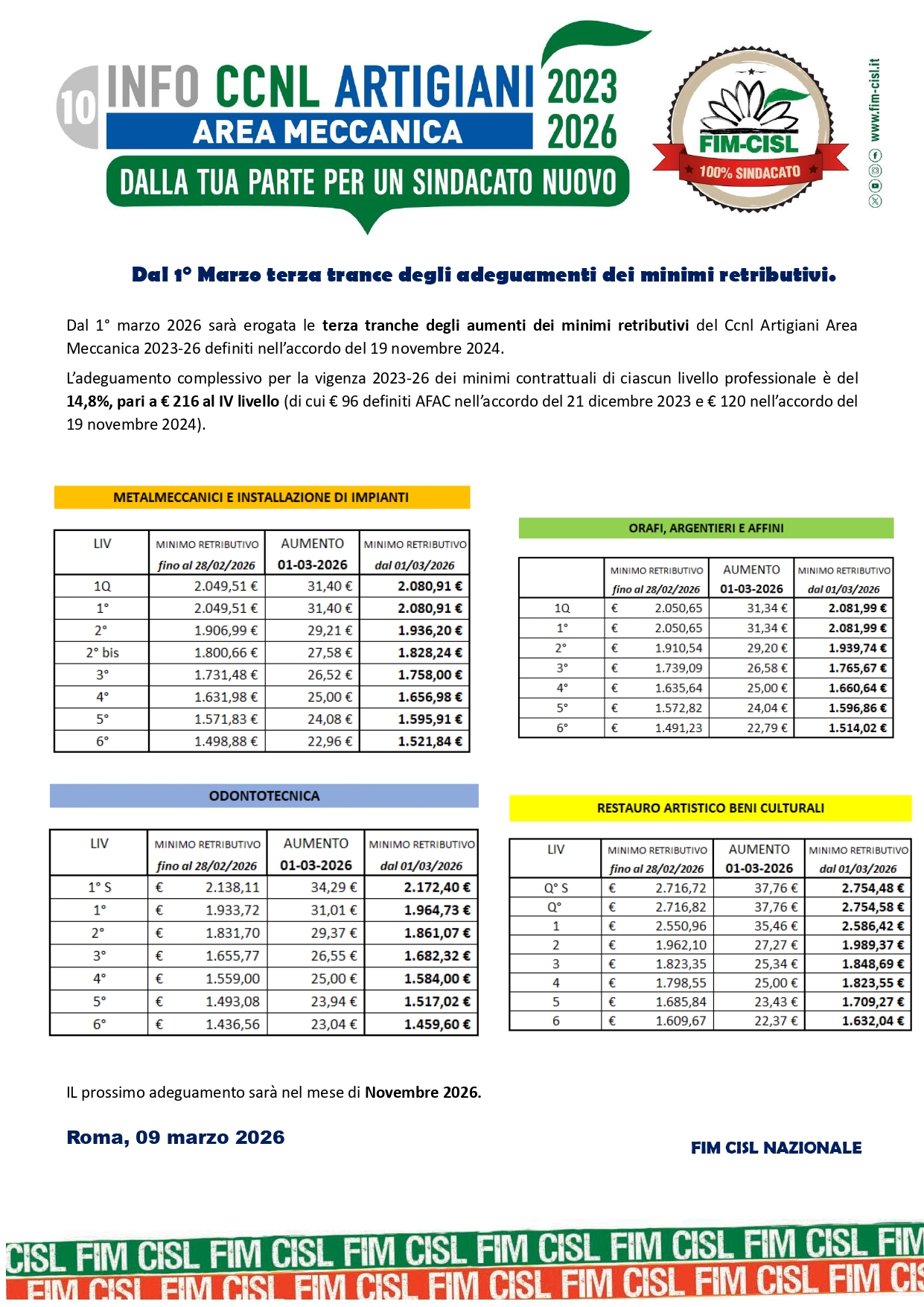 CCNL Artigianato Area Meccanica: dal 1° marzo 2026 terza tranche degli aumenti salariali