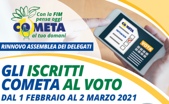Dal 1° Febbraio al 2 Marzo i lavoratori iscritti a Cometa votano per il rinnovo dell’assemblea dei delegati del Fondo Cometa.Si esprime il proprio voto online, accedendo all’area riservata del sito del Fondo Cometa. Puoi votare una delle liste indicate (nome e simbolo della Lista) Fim – Fiom – Uilm […]