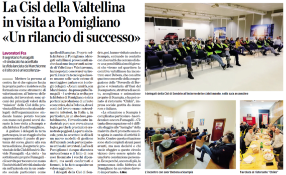 La delegazione della CISL di Sondrio, nel mese di gennaio, è stata in visita a Scampia e alla fabbrica Fca di Pomigliano per toccare con mano l’incisività dell’attività sindacale in un’azienda che opera in un contesto sociale particolare come quello di Scampia. A guidare i delegati in un viaggio che […]