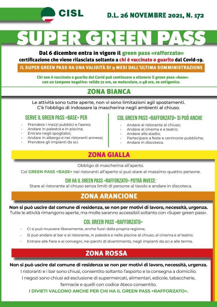 Dallo scorso 6 dicembre, come deciso dal Consiglio dei Ministri del 24 novembre scorso, è entrato in vigore il green pass «rafforzato», una certificazione che viene rilasciata solamente a chi è vaccinato o guarito da Covid-19.
